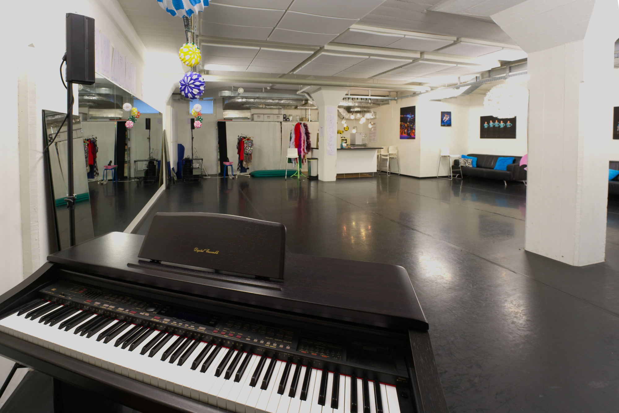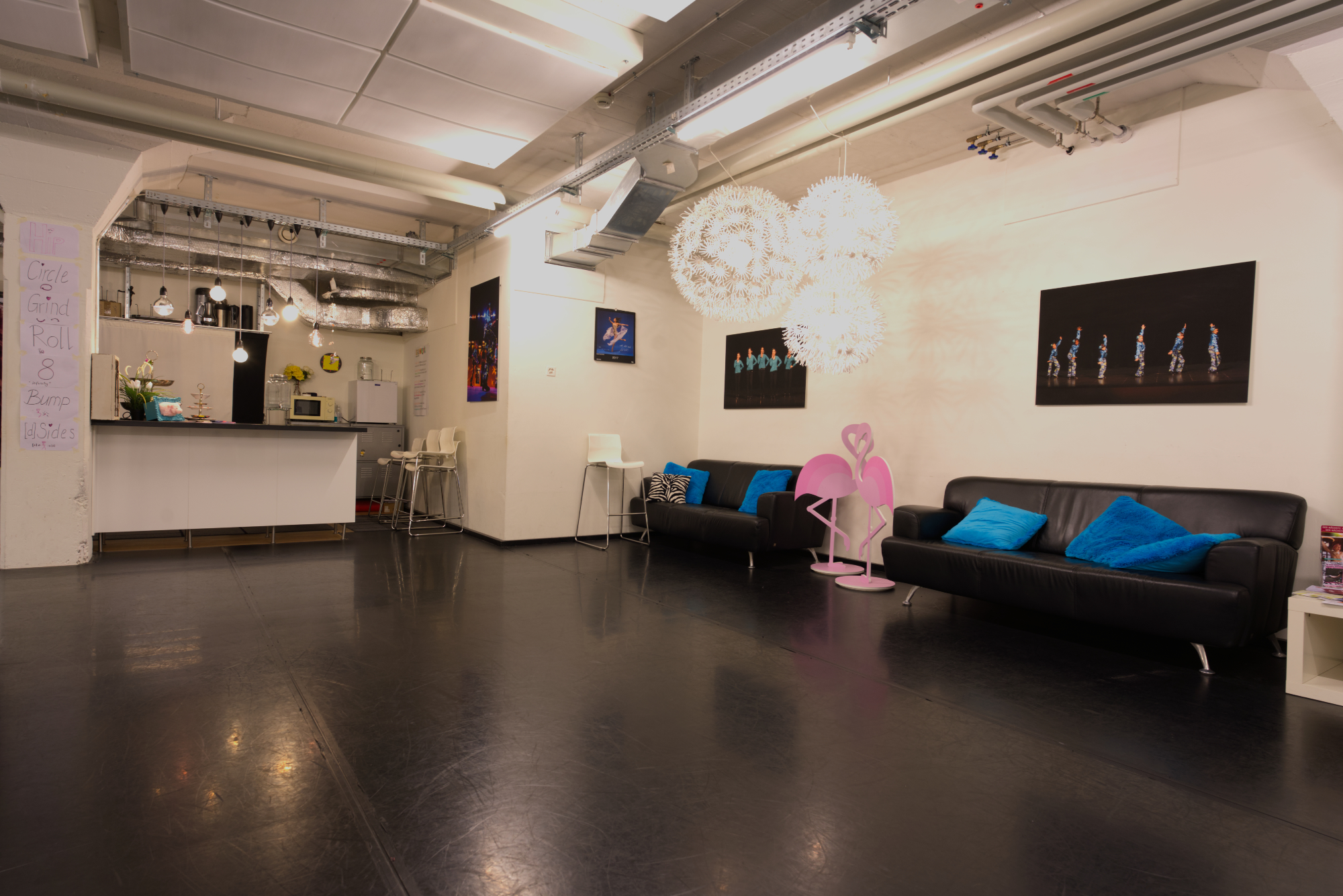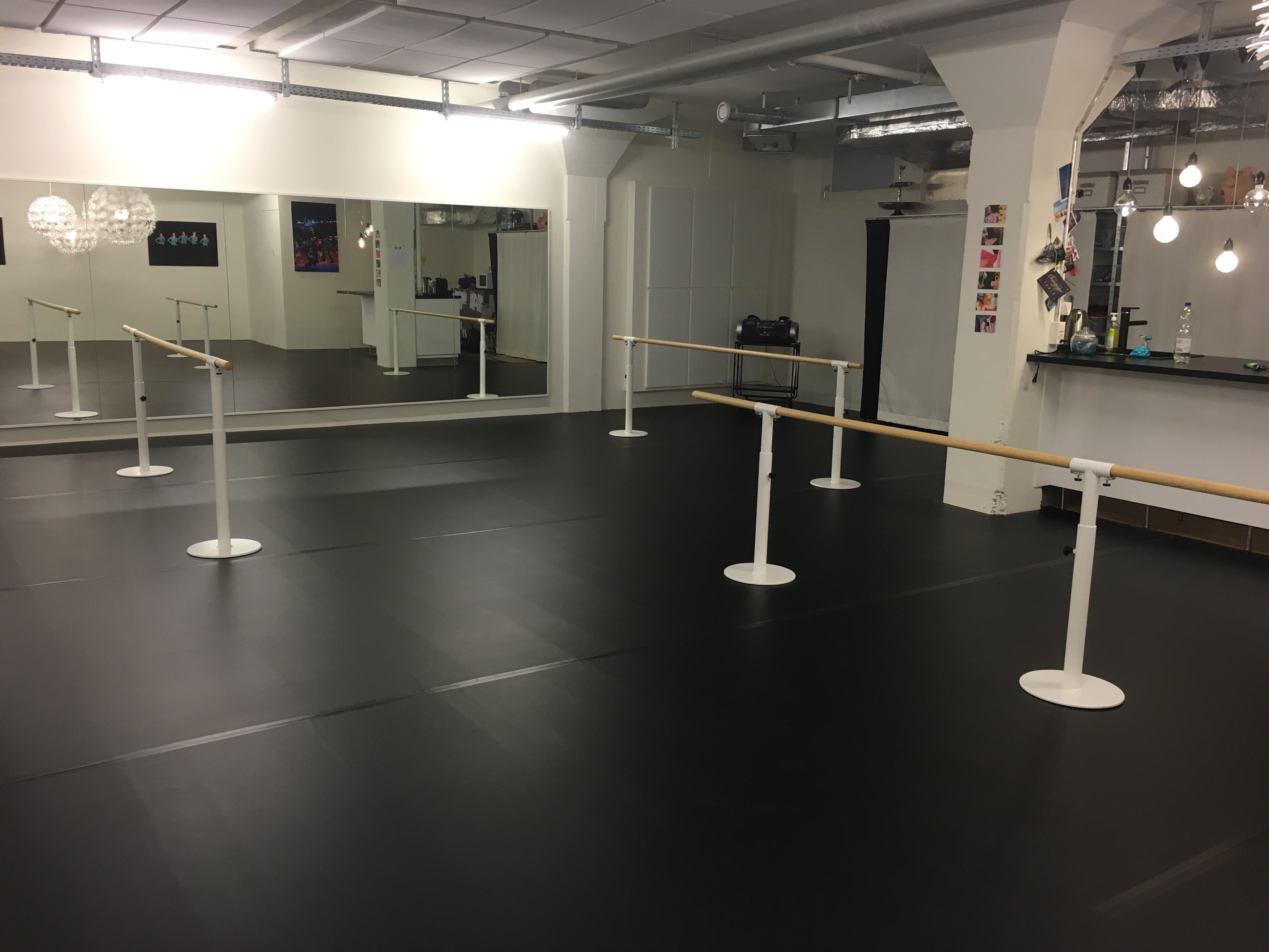 Zwei Studios mit hochwertigem Holzboden, eines mit professionellem Tanzteppich